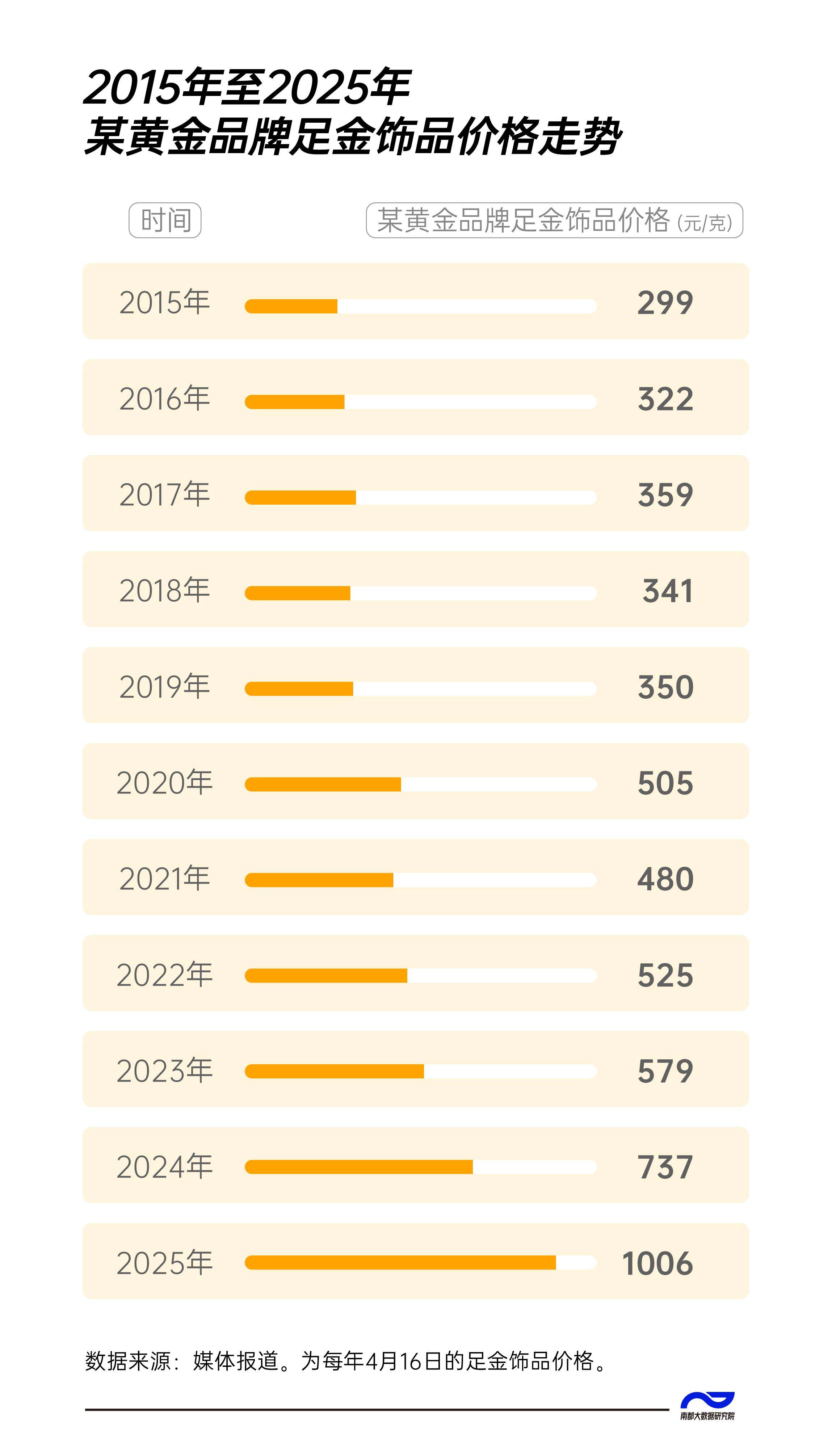 2025年国际金价迎来了历史性爆发。在短短一年的时间里,国际金价先后突破了3000美元/盎司和4000美元/盎司,并在年末再创新高,逼近每盎司4600美元。世界黄金协会公布的数据显示,2025年国际金价共计53次刷新历史纪录,年内涨幅超过60%,创下自1979年石油危机以来年度最大涨幅,成为2025年表现最亮眼的资产之一。值得一提的是,国内金饰的价格也在2025年站上了1000元/克的关口,并呈现持续上涨趋势。有统计数据显示,2015年4月中旬国内金饰价格约为300元/克,2025年4月中旬约为1000元/克,10年时间,国内金饰价格涨了近700元/克。